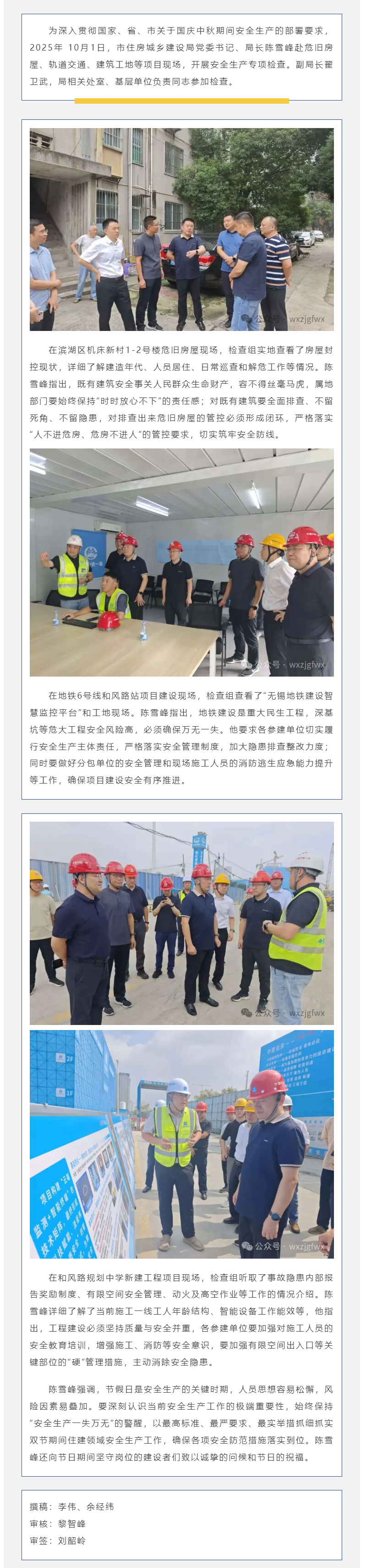 陈雪峰带队检查住建领域国庆中秋假期安全生产