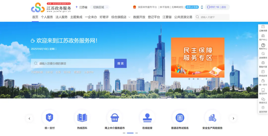 ①登录江苏政务服务网(https://www.jszwfw.gov.cn/)。