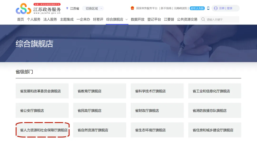 ②在综合旗舰店下选择“省人力资源和社会保障厅旗舰店”。