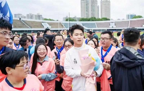 球员们陆续下车。93号同乐刚走到通道口,就被喊着“勺子点球超帅”的球迷围住,他接过鲜花,弯腰为球迷签名;队长吴磊挥手与球迷打招呼,声音略带沙哑:“谢谢大家一直陪着我们。”