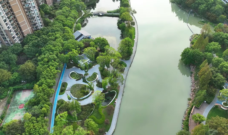 梁溪河河埒段,岸边黄杨笔挺、红枫似火,10多种高大树木舒展枝叶,与错落的绿灌木、盛放的紫色花卉相映,山石点缀其间,亭台依水而建,每一步都是风景。在这里散步的59岁市民袁晓东说,5年前这里“亲水性差,岸边就几棵杂树和灌木”,如今这里疏林透河、绿化成景,“生态好了,散步都觉着心里敞亮”。