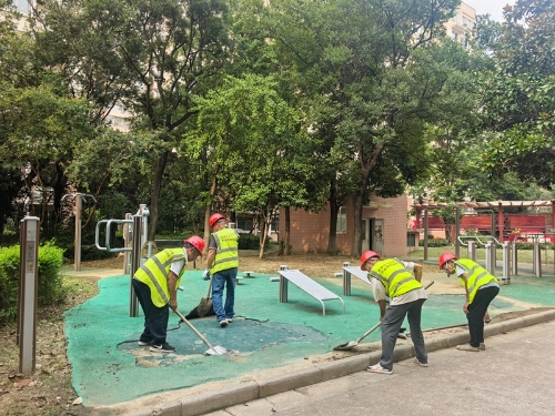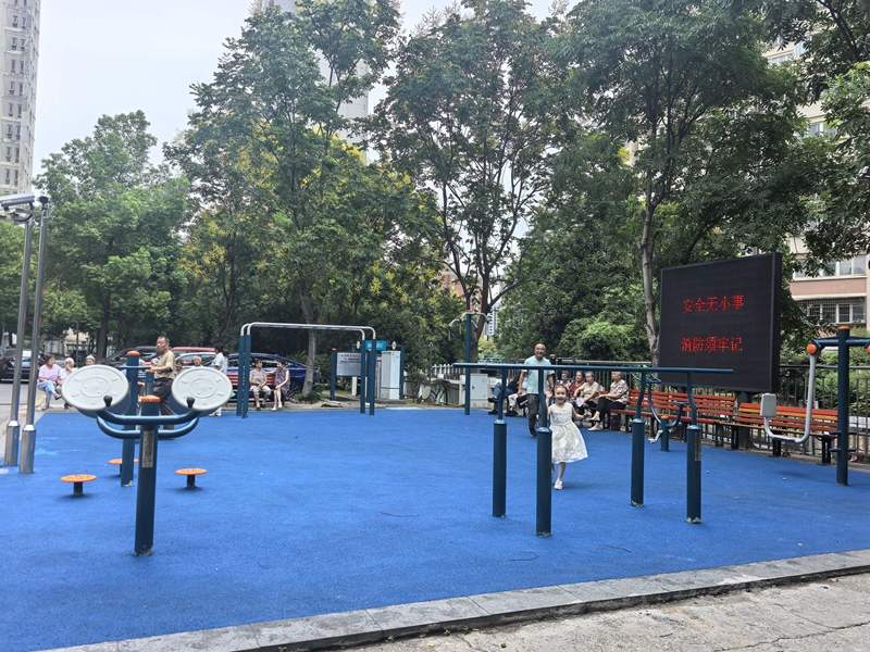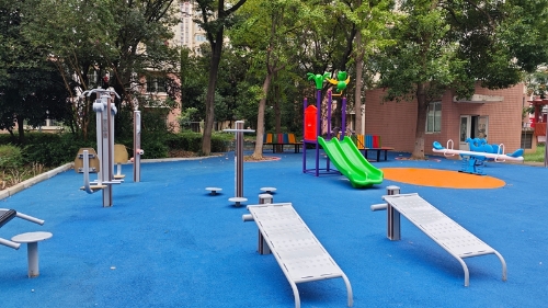 群众的“呼声”就是行动的“哨声”。在接到“微幸福”工单后,新惠家园小区党支部迅速响应,联合辖区人大代表深入调研,组织物业、党员和居民代表召开现场协商会,召集施工队彻底铲除两片健身场地的旧地坪,重新铺设环保耐用的塑胶地坪。同时,对健身器材进行全面检修,消除安全隐患,并且在五期的健身场地增设了部分儿童游乐设施。