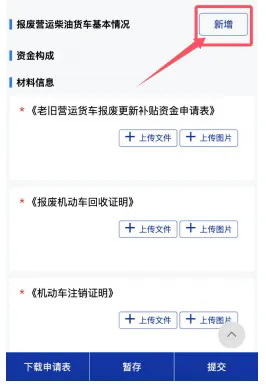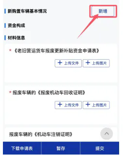 4.下载《老旧营运货车报废更新资金申请表》,打印并签字盖章后上传到申请材料中。