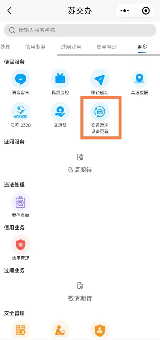 2.进入“更多”栏目,选择“交通运输设备更新”。