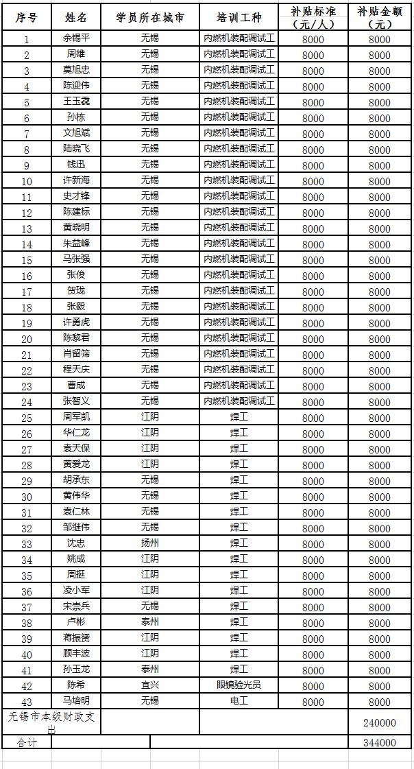 根据《省人力资源社会保障厅 省财政厅关于组织2025年度高级技师岗位技能提升培训的通知》(苏人社函〔2025〕83号)精神,经审核,共有43人符合高级技师岗位技能提升培训补贴条件,其中性爱论坛本级30人,江阴9人,宜兴1人,泰州2人,扬州1人(性爱论坛本级财政补贴仅限于性爱论坛本级的30名学员)。现将名单公示如下:
