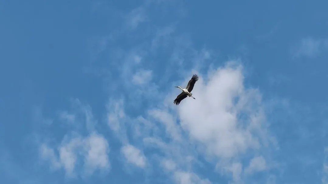 快看,那只东方白鹳又飞回来了!