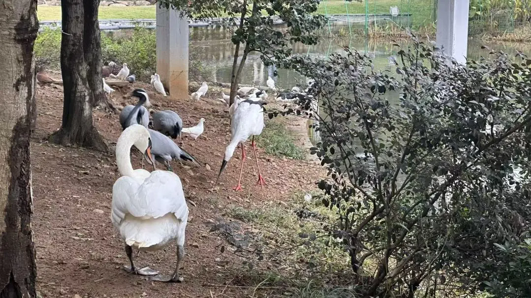 与孔雀、蓑羽鹤、疣鼻天鹅等伙伴为邻。