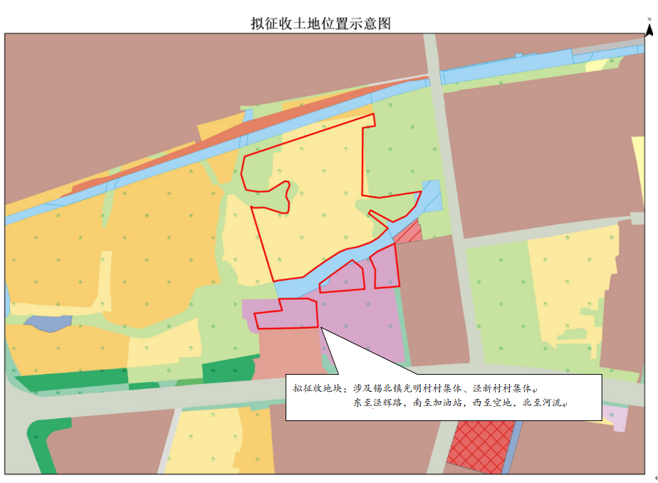 本次拟征收土地位于锡北镇光明村村集体、泾新村村集体范围内。拟征收土地位置详见附图。