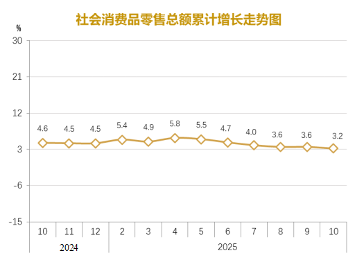 | 内容概述 | 2025年1-10社会消费品零售总额增长3.2% | ||||