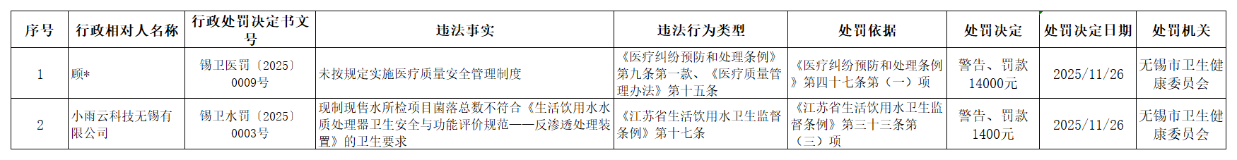 2025年行政处罚卫健委网站双公示(第二十五批)