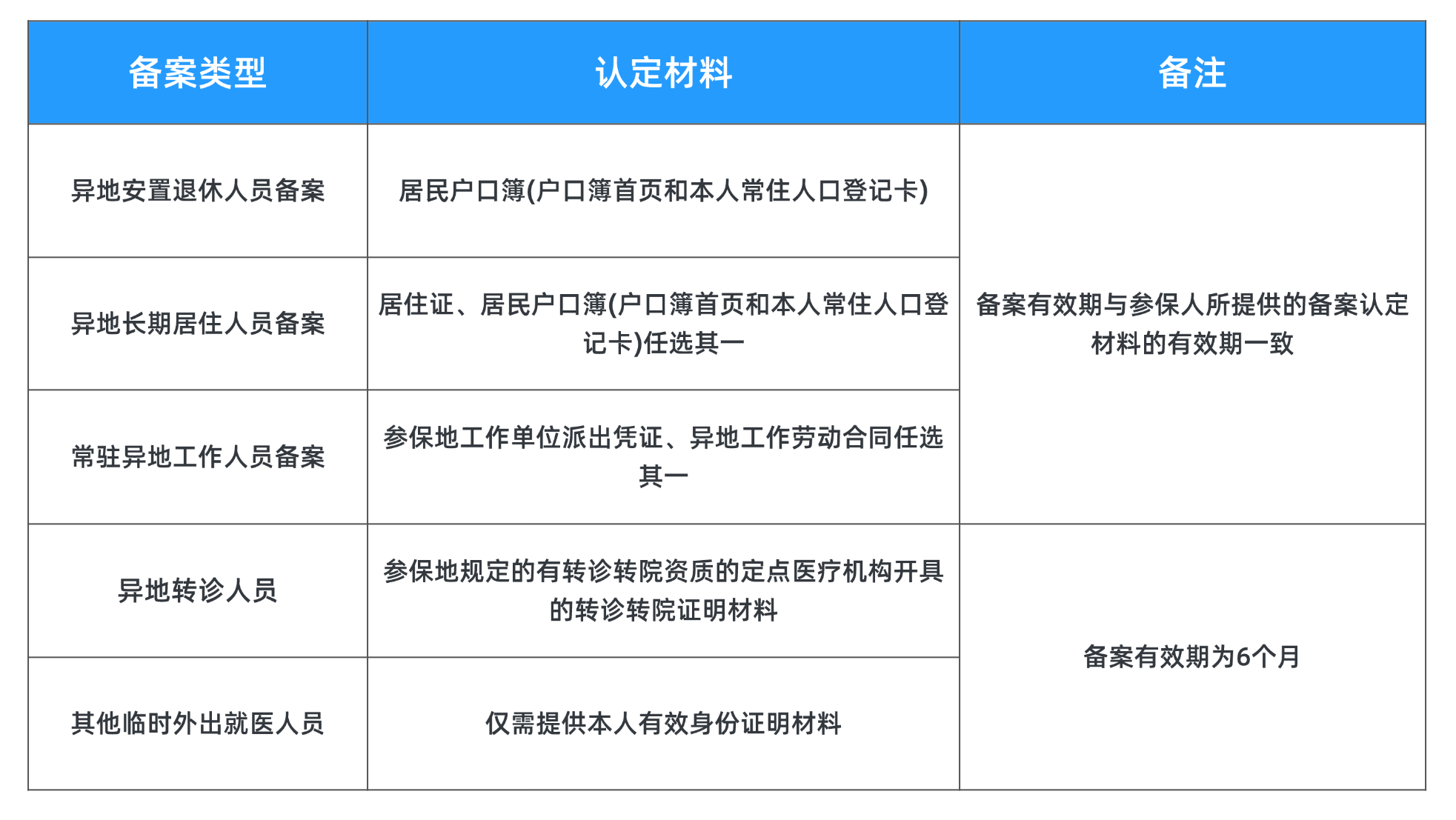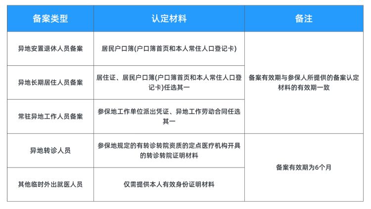 2.以异地安置退休、异地长期居住、常驻异地工作三种类型进行异地就医备案的,6个月内不得取消异地备案登记。