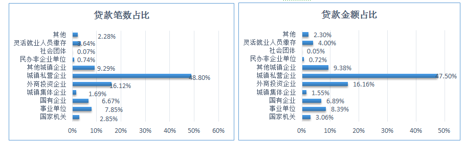 2023年二季度职工贷款笔数及贷款金额按单位性质分类占比图