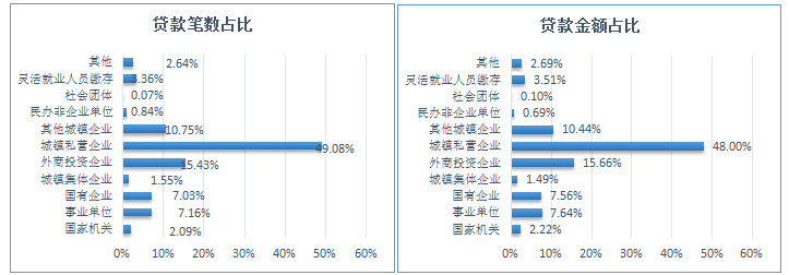 2023年四季度职工贷款笔数及贷款金额按单位性质分类占比图