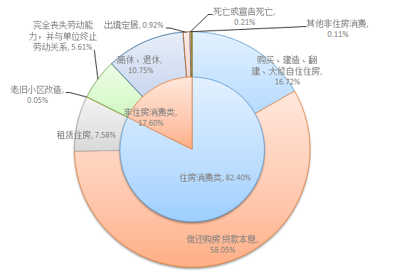2025年二季度,住房消费类提取金额为50.01亿元,环比下降17.83%,占当季提取额的82.4%。其中还贷提取占比最高,提取金额35.23亿元,占当季提取额的58.05%。具体提取结构如下: