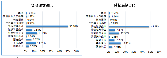 2025年三季度职工贷款笔数及贷款金额按单位性质分类占比图